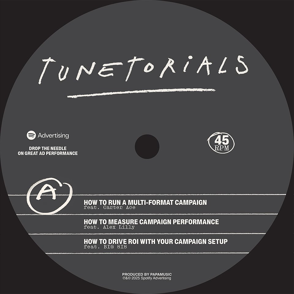 Spotify bringt mit Tunetorials ein Album heraus, das speziell auf Marketer*innen, Agenturen und Entscheider*innen aus der Markenwelt zugeschnitten ist. Step-by-Step-Anleitungen aus dem Werbealltag werden zu eingängigen Songs und Musikvideos: sechs exklusive Tracks von aufstrebenden Künstler*innen übersetzen echte Lösungen aus der Mediaplanung in Musik – zum Streamen, als Musikvideos und sogar als limitierte Vinyl-Edition.