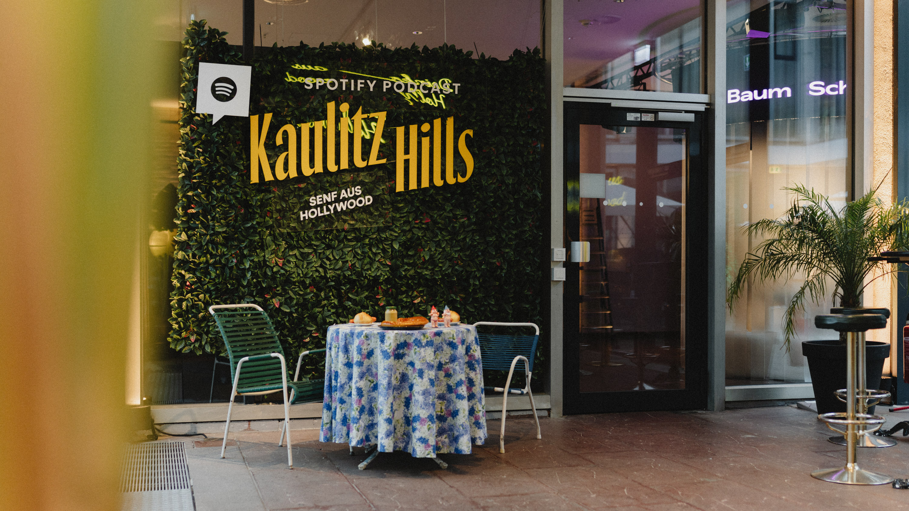 - die „Drinks aus Hollywood"-Bar mit passenden Drinks zum Kaulitz Hills - Senf aus Hollywood Podcast sowie ein Foto-Setup mit dem ikonischen Podcast-Cover;