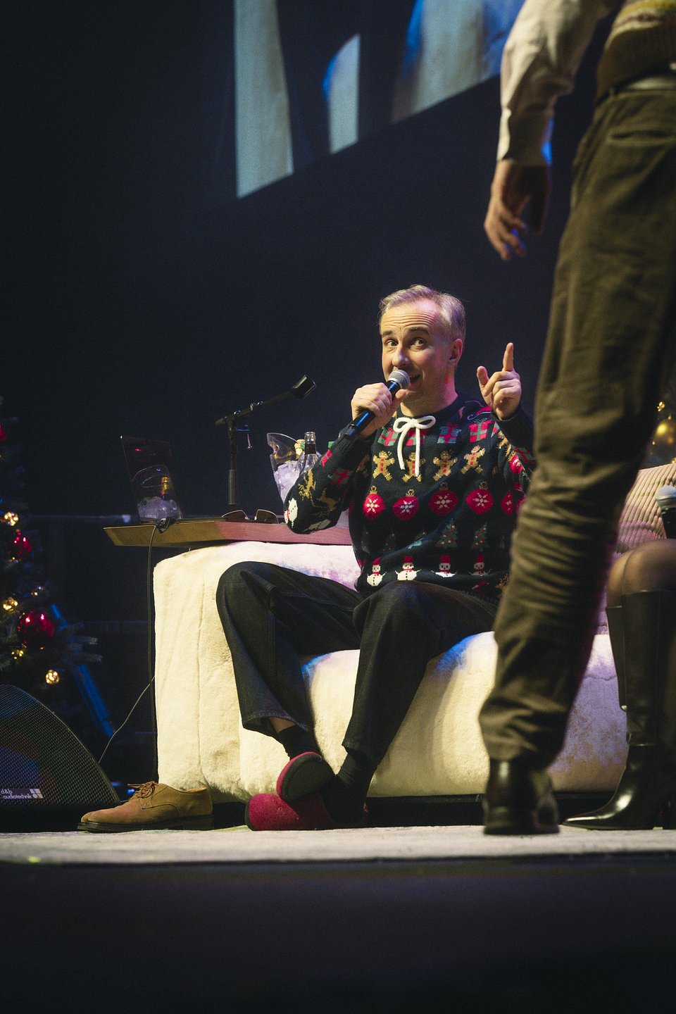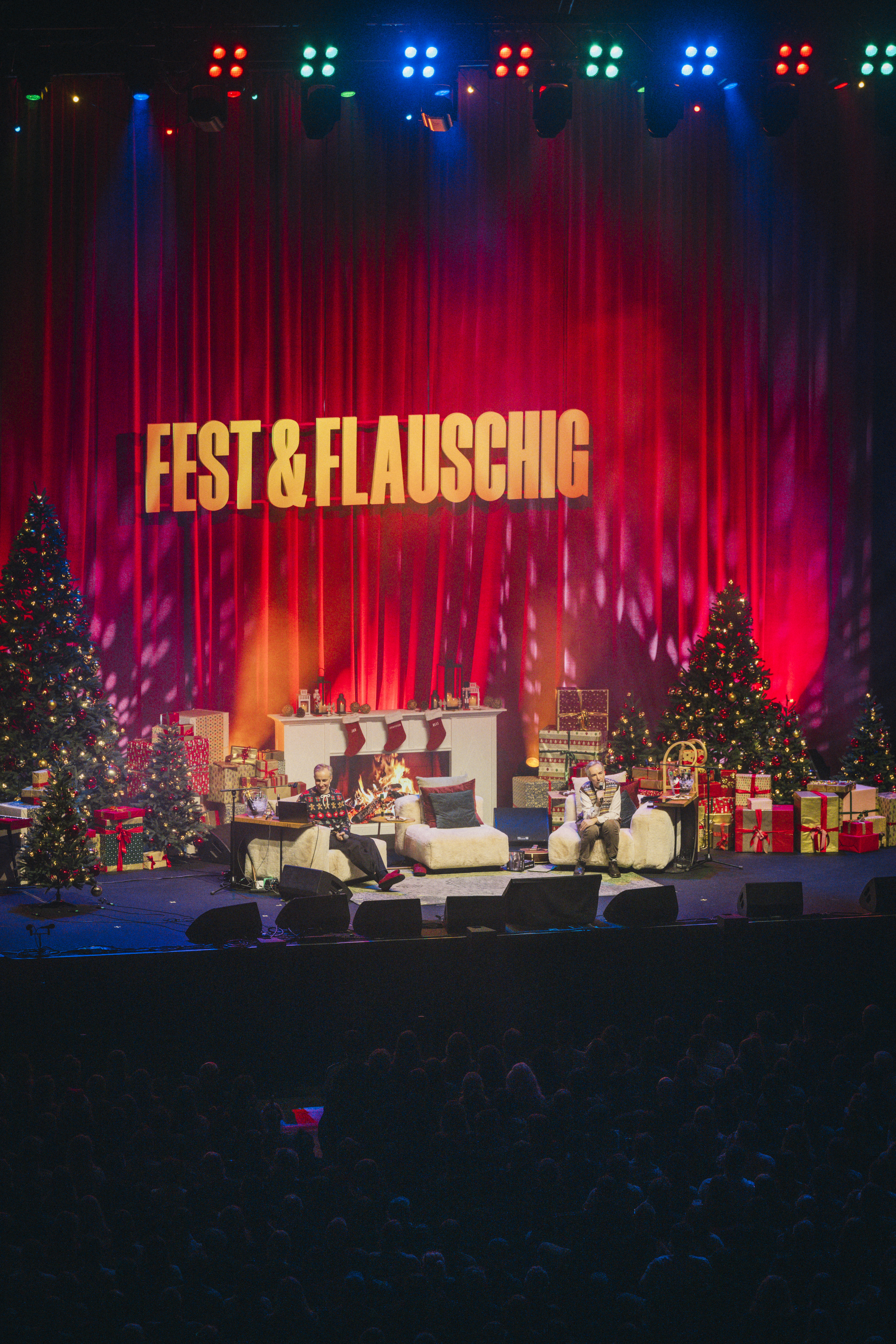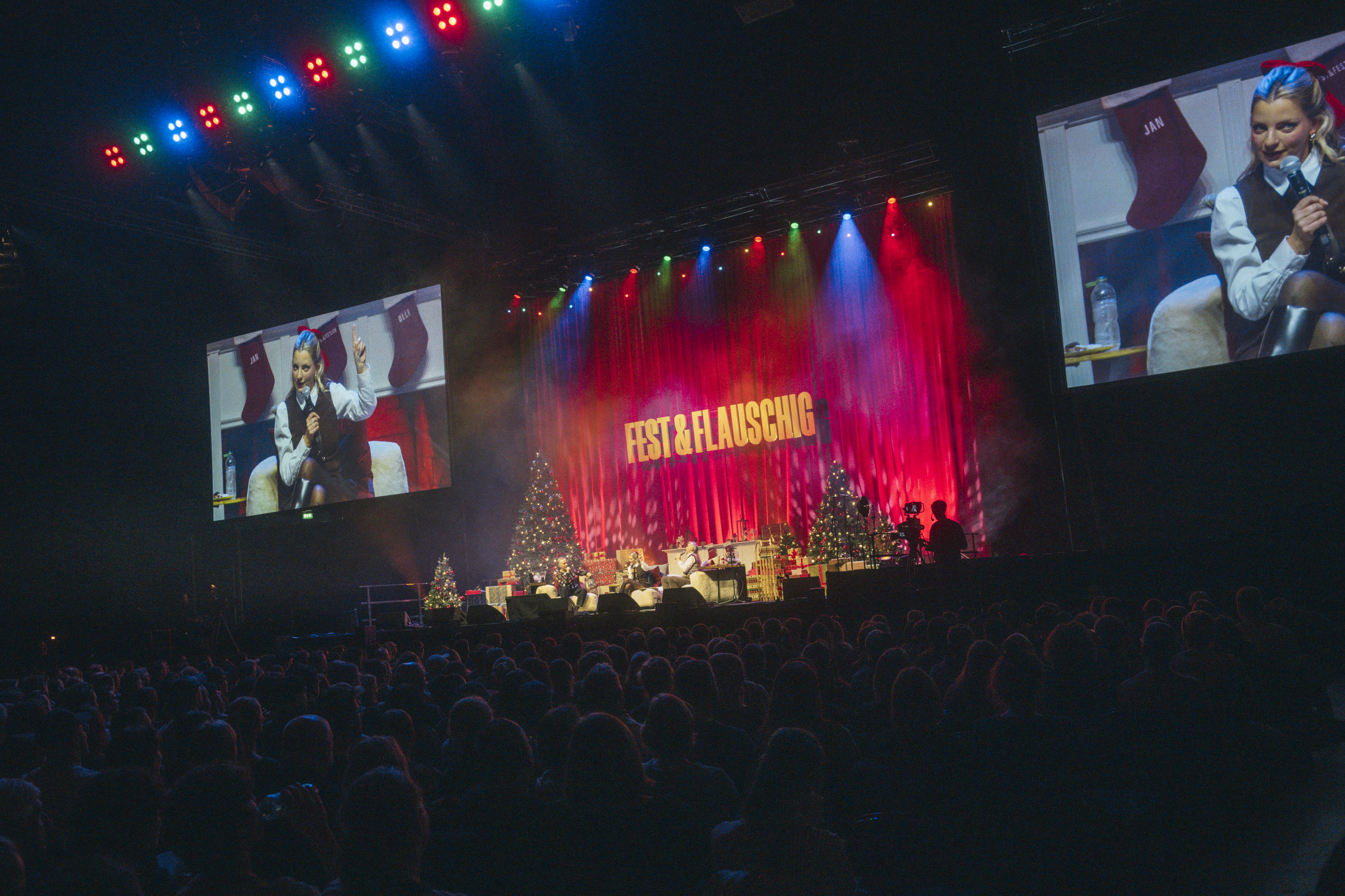 Der Jubiläumsabend wartete mit zahlreichen Highlights auf: Von der beliebten Podcast-Rubrik „Die großen 5" bis hin zu einem Geburtstagsständchen der gesamten Arena für „1000-Mark-Andre". Lichtdesigner Rob Coleman, sonst mit Iron Maiden auf Tour, setzte den Weihnachtszirkus mit einem besonderen Lichtkonzept in Szene.