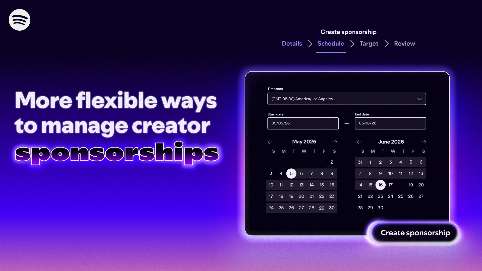 - Neue Sponsoring-Tools für Video-Creator*innen: Ab April können Creator*innen über Spotify for Creators und Megaphone von den Hosts gelesene Sponsorings in Video-Folgen einfacher planen, dynamisch auswechseln und auswerten. Ziel ist es, plattformübergreifende Prozesse zu vereinfachen und Creator*innen mehr Kontrolle über ihre Sponsorings zu geben.