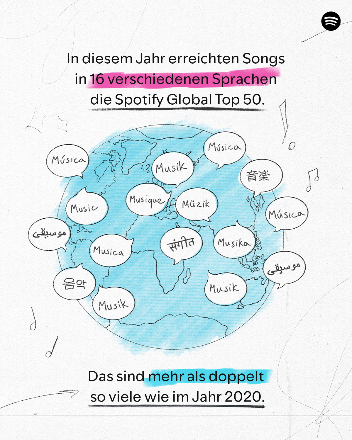 - Wachstum spricht viele Sprachen: Die größten Hits von heute werden in mehr Sprachen als je zuvor gesungen: 2025 erreichten Songs in 16 verschiedenen Sprachen die Spotify Global Top 50 – mehr als doppelt so viele wie noch 2020.