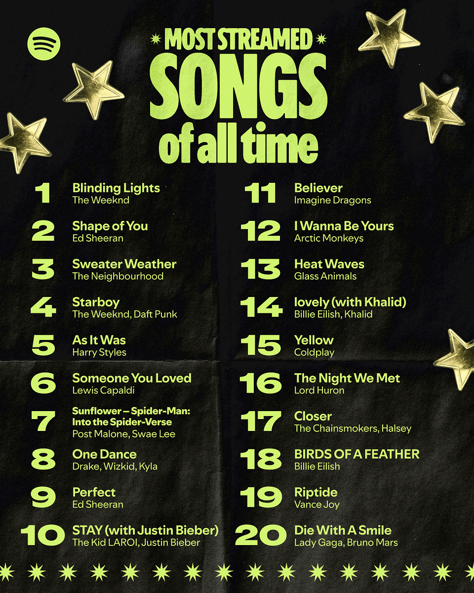 Die 20 meistgestreamten Songs aller Zeiten auf Spotify: